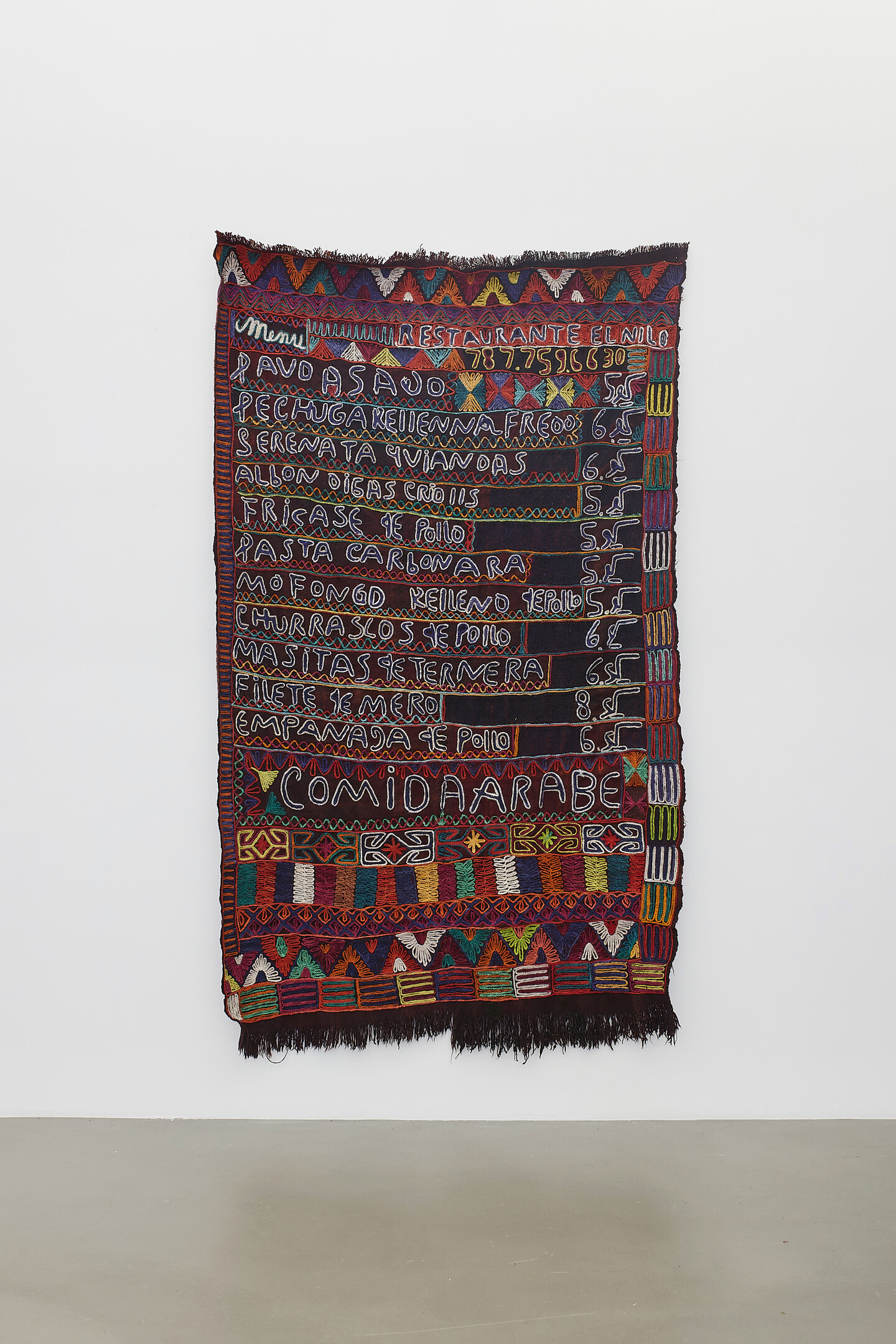 embroidery by Sitt Salma; wool, natural and synthetic dyes, 245 × 299 cm