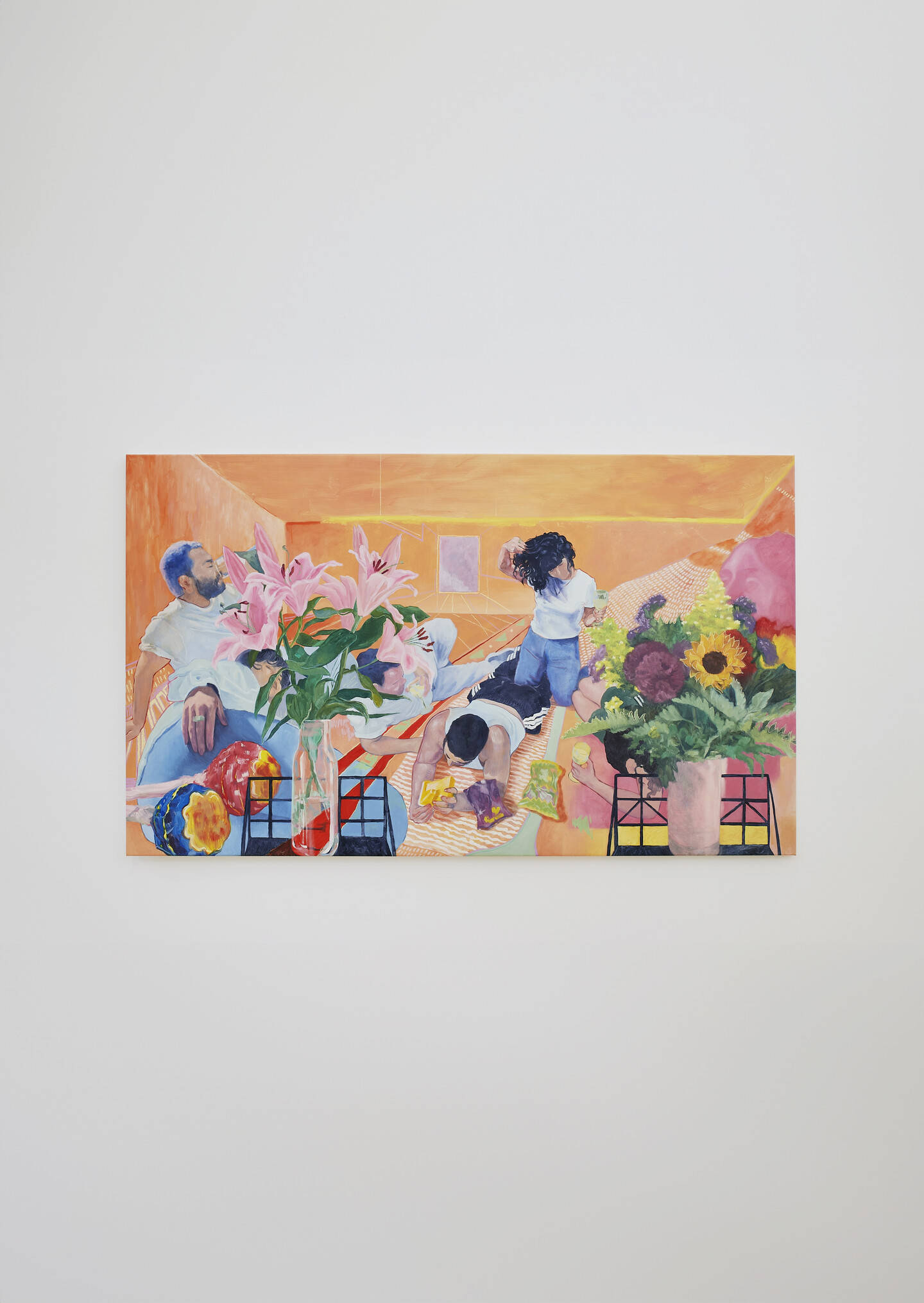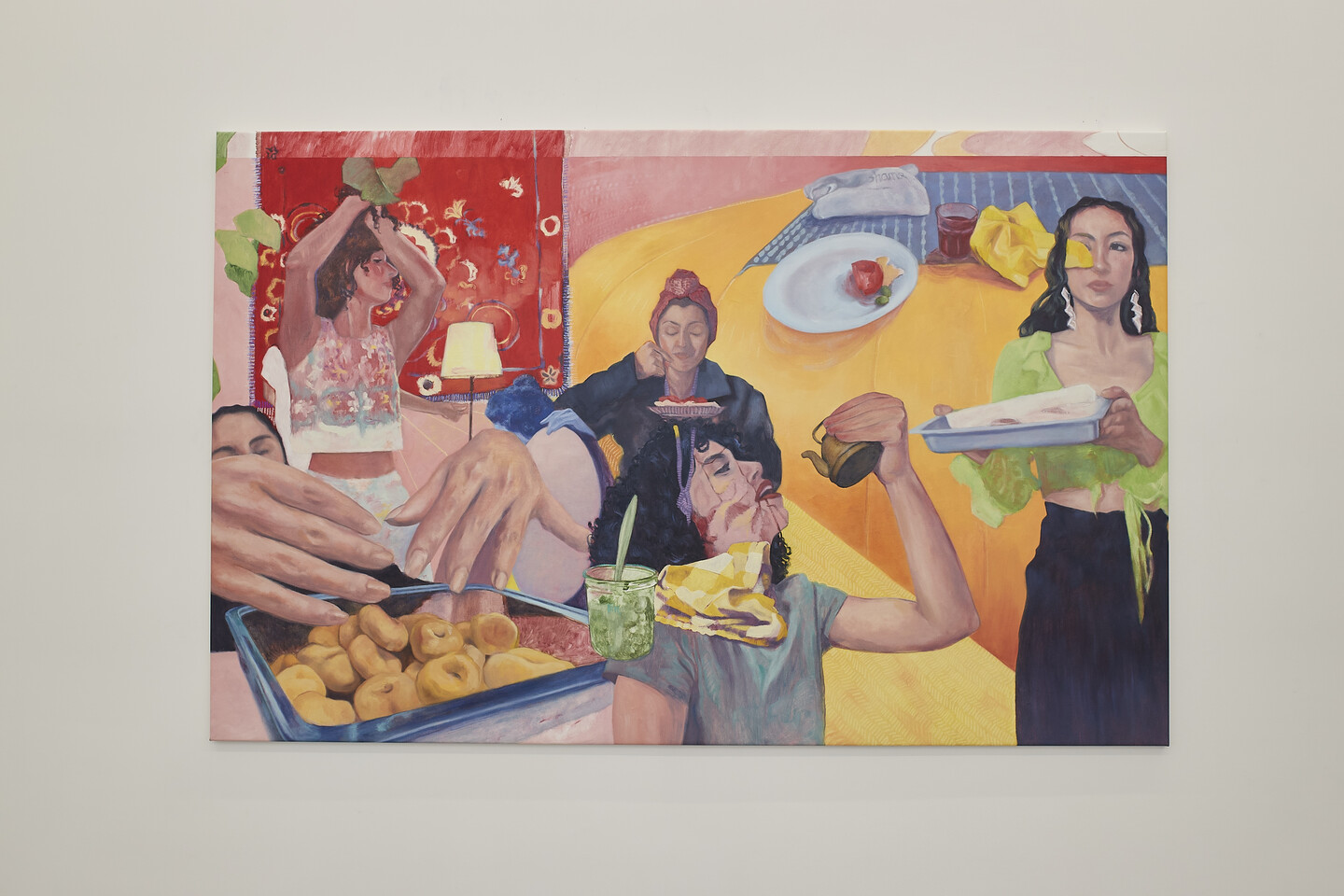 Bayan Kiwan (*1995 in Amman, Jordan, lives and works in New York, USA) is a Palestinian-Jordanian artist whose research and practice are driven by questions of place, memory, and the everyday as an inscrutable site of resistance. An extension of this, her paintings are explorations of women’s private sociality and intimacy.