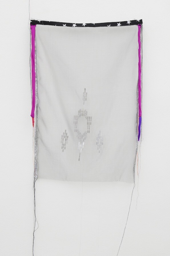 fabric, metal, thread, 70 × 49 cm
