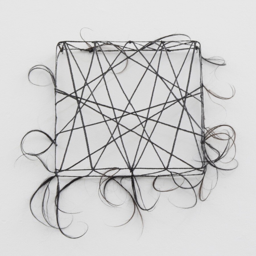 synthtic hair, resin, 48 × 50 × 5 cm