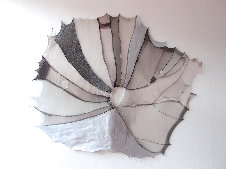nylons, resin, aluminium powder, 208 × 163 cm