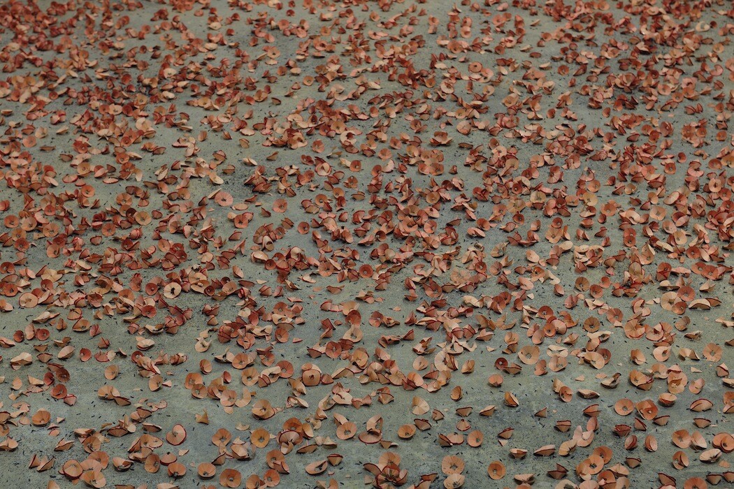 performance/installation, colour photograph, inkjet print on poster paper (100 × 150 cm), pencil shavings, various dimensions