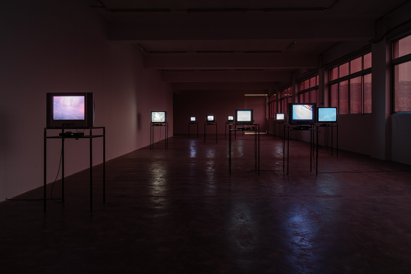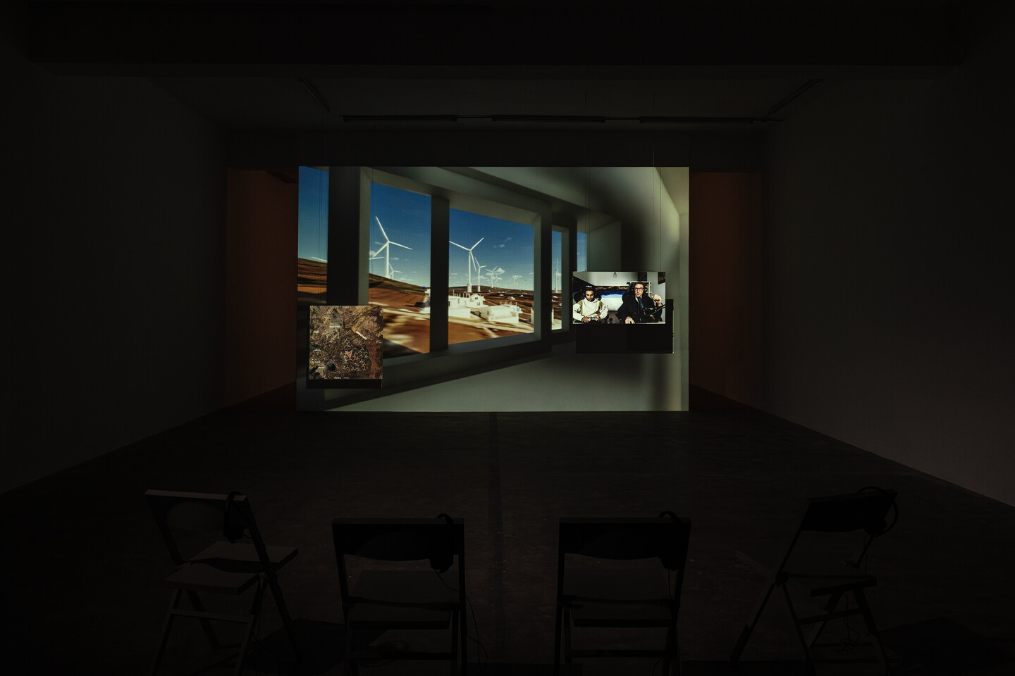 Abu Hamdan statement that ‘Power resides with those who define what constitutes noise’ is as fundamental to his exploration of the urban noise-scape of Cairo in the post 2013 military coup as it is to his most recent work in the Syrian Golan Heights occupied territories – recently witnessing political unrest brought about by the planned installation of wind turbines in proximity to people’s homes. Raising awareness about the effect of such noise, Abu Hamdan has also developed a video game with fellow researchers at Earshot* based on the sound recordings of similar turbines in Gaildorf, Germany and recordings of ambient noise captured in the Golan Heights. The installation mimics the nowadays popular style of streamers, showing a recording of the game commented by the artist.
