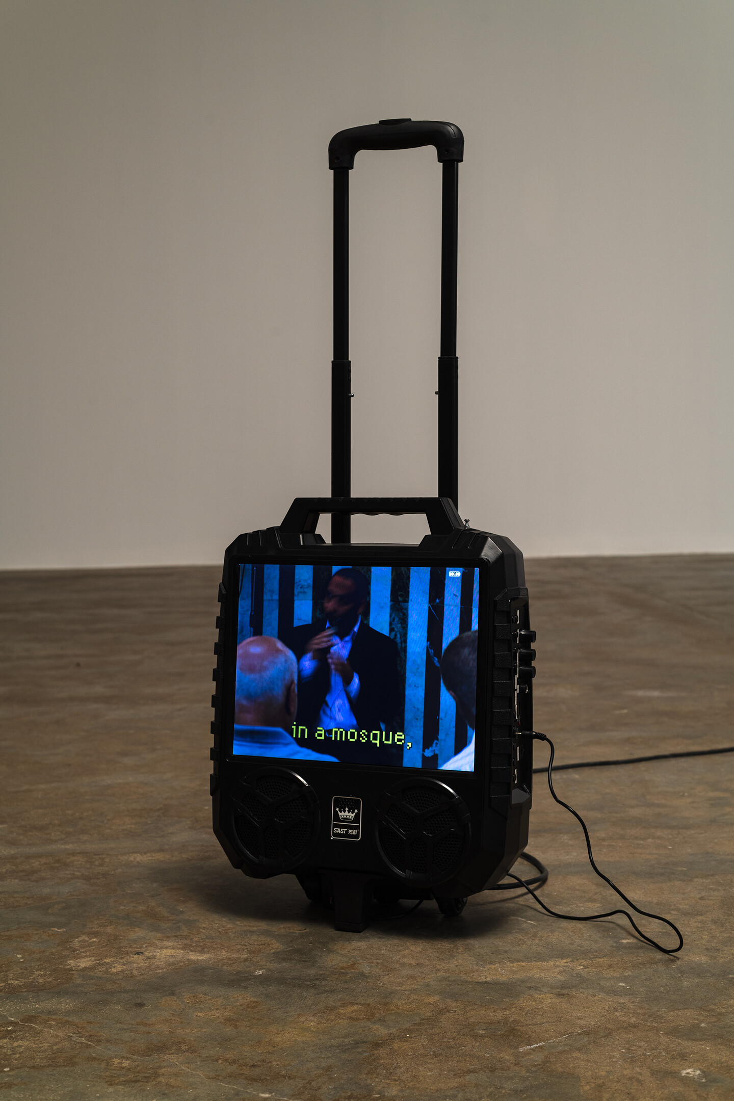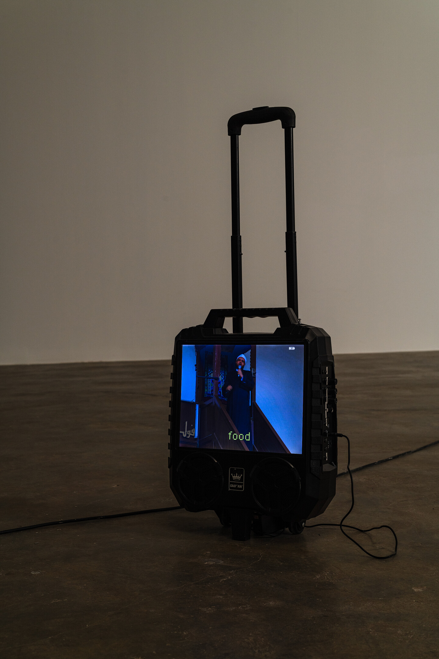 In the new works from 2025, Abu Hamdan deals with noise and interference in media equipment, with an installation that uncovers the imperceptible electromagnetic fields that accompany us all the time through our portable electronic devices; as well as the systematic targeting of cameras, livestreams and journalists since the start of the genocide in Gaza and during the invasion of Lebanon by the Israeli army, using the last sometimes distorted frames of the targeted recording equipment to create an installation that shows the persistence of media through forces of erasure.