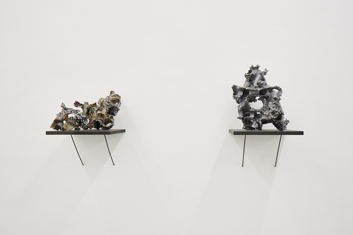 While the Symmetriaden, so the title of the series described above, try to create a form which has not yet been comprehended, the work of the series Fragments retain the moments of deconstruction. The initial forms, which are a kind of tube systems or even lattice patterns, are modified and transformed in the artistic process into seemingly organic forms as well as objects which are attributed to a rather technoid aesthetic.