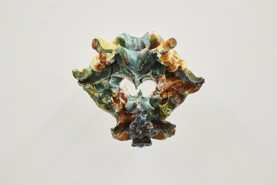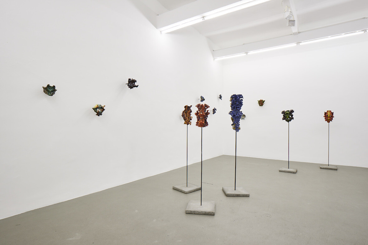 With the approach to form the fiction, Moritz Altmann works with plasticine, intuitively and with both hands at the same time. The symmetrical modeling defines the finished objects and makes them associative: from organic structures to masks and faces, much is recognizable in the many-color ceramics.