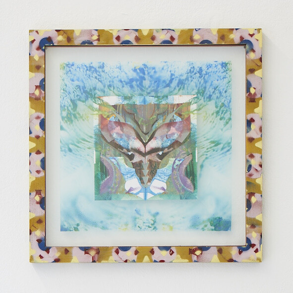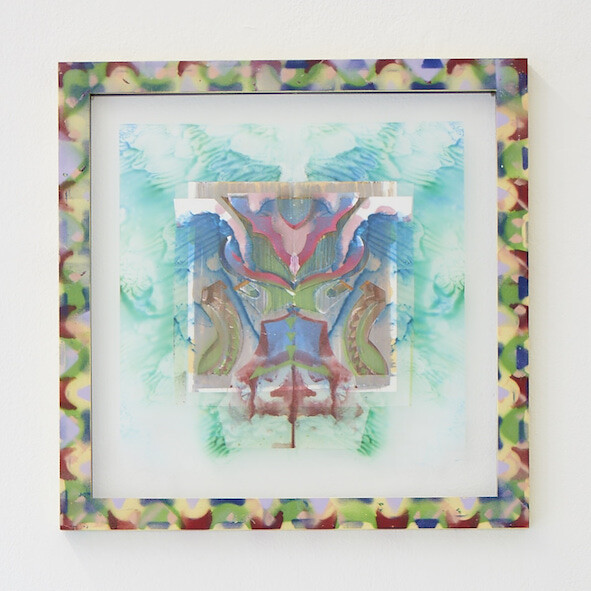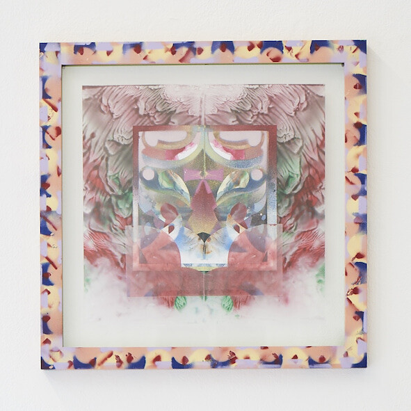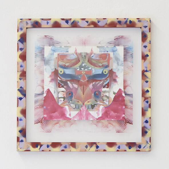mixed media on paper and foil, sprayed object frame, 40.5 × 40.5 cm