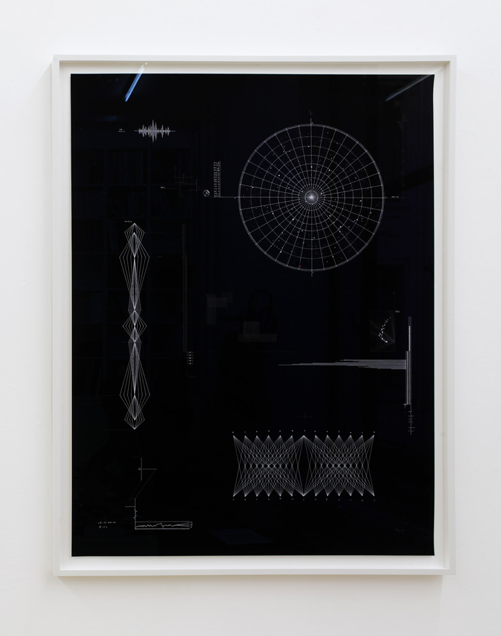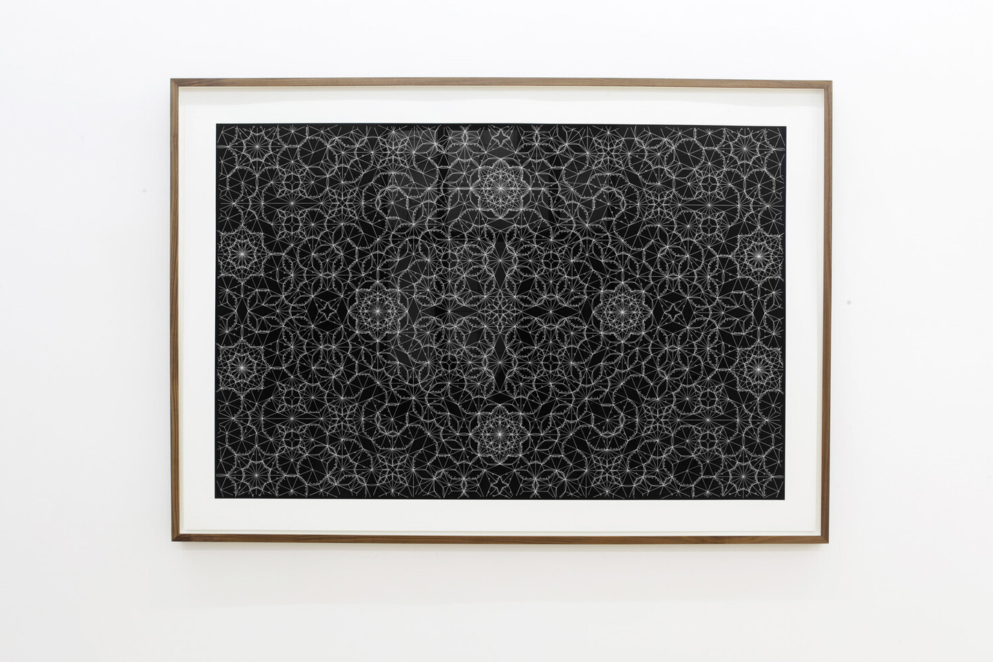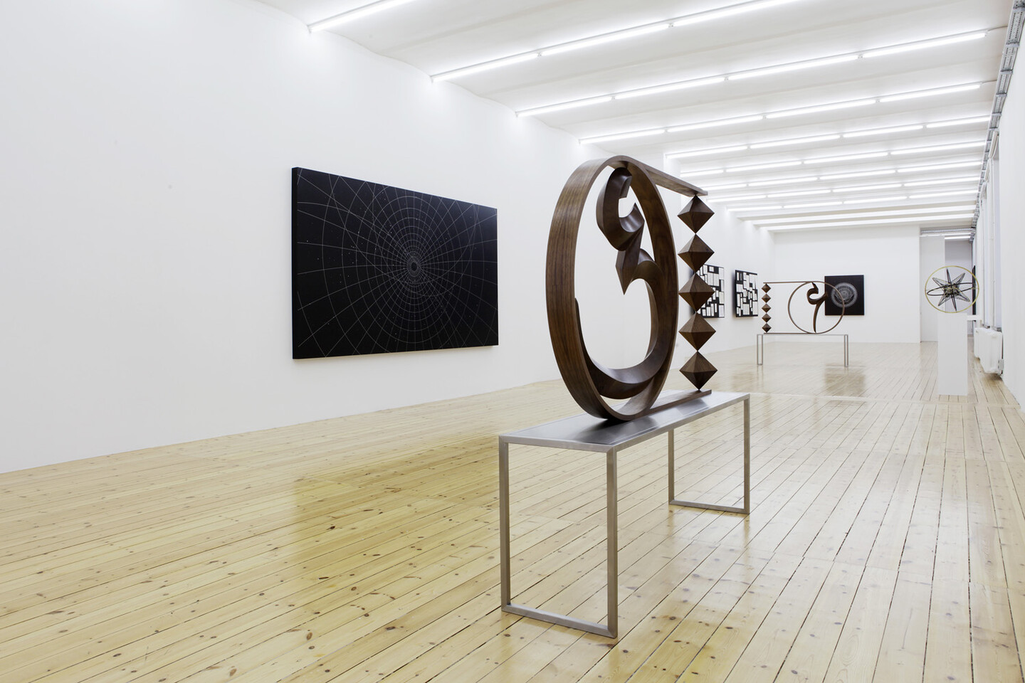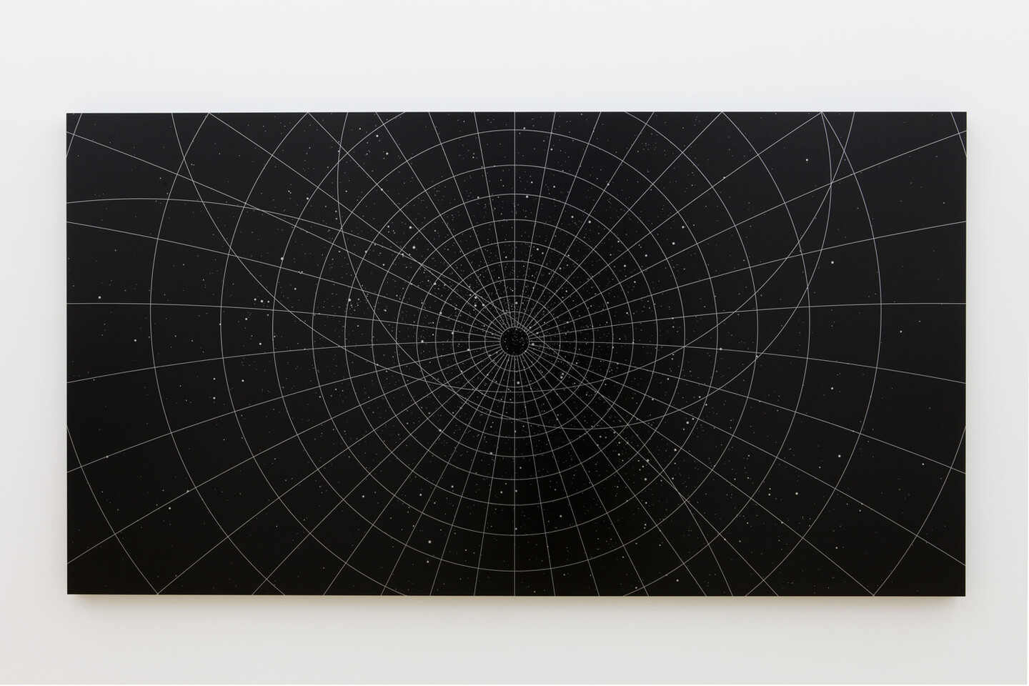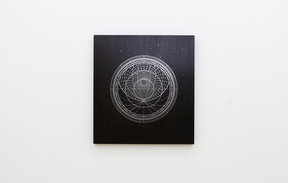A monumental blackboard with steel inlay on wood dominates the exhibition and refers to the first reform, reaching for the stars, to a metaphysical and surreal dimension. In a second inlay work the artist reconstructs the night sky above Bagdad in spring 934 using a specialized computer software.