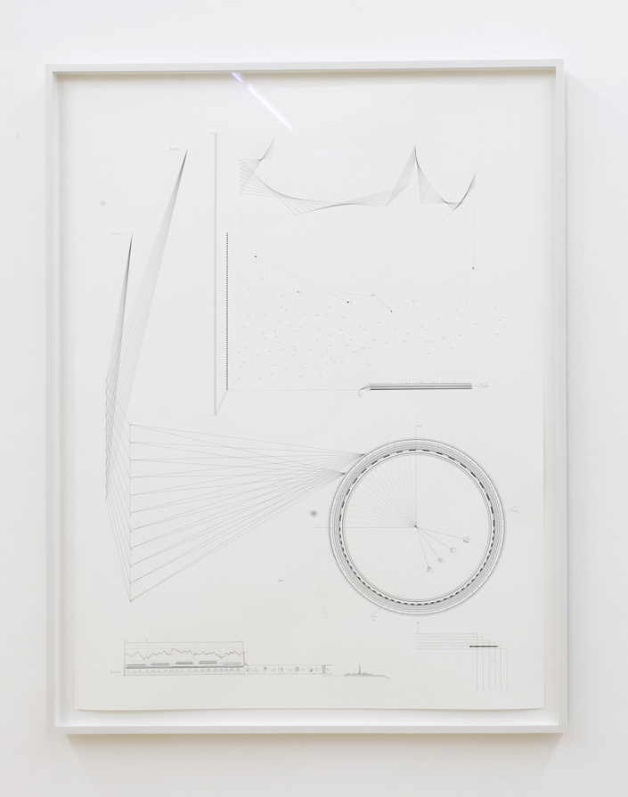 Working with the maps and astronomical measuring tools from that period, the artist tried to get closer to the form of the missing letters.